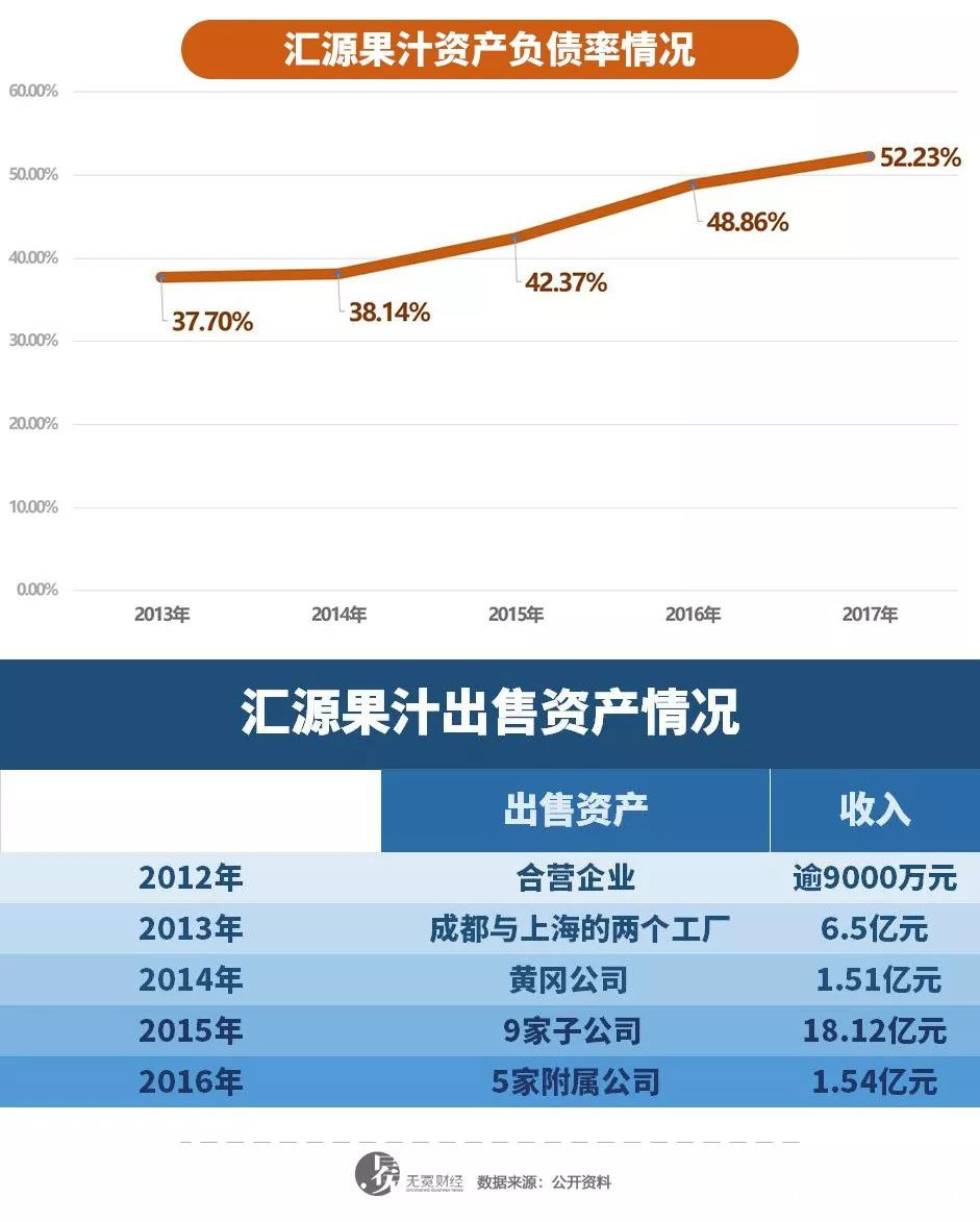 這場收購開始前,外界紛紛慨嘆“匯源賤賣”,但此時的匯源,已被沉重的債務壓得喘不過氣。據匯源果汁發佈的未經審計數據顯示,截至2017年底,匯源果汁總負債114億元。