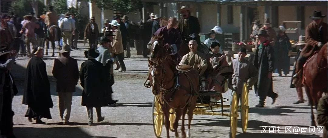 而指向未來的“時間”裏,主體是清晰的。拍攝於北京的《獅王爭霸》,廣東會館上高懸的“粵獅雄威”牌匾屢次出鏡,黃飛鴻將獅王金牌扔還李鴻章,不卑不亢地勸其“廣開民智、智武合一”,一度和《男兒當自強》開頭廣州士子游行支持“公車上書”形成了互文:自晚清以來,康有為、梁啓超、孫中山和一個“虛構”的黃飛鴻,是粵文化足以為整個中國提供思想資源的體現——和當時香港的經濟地位正好相符。