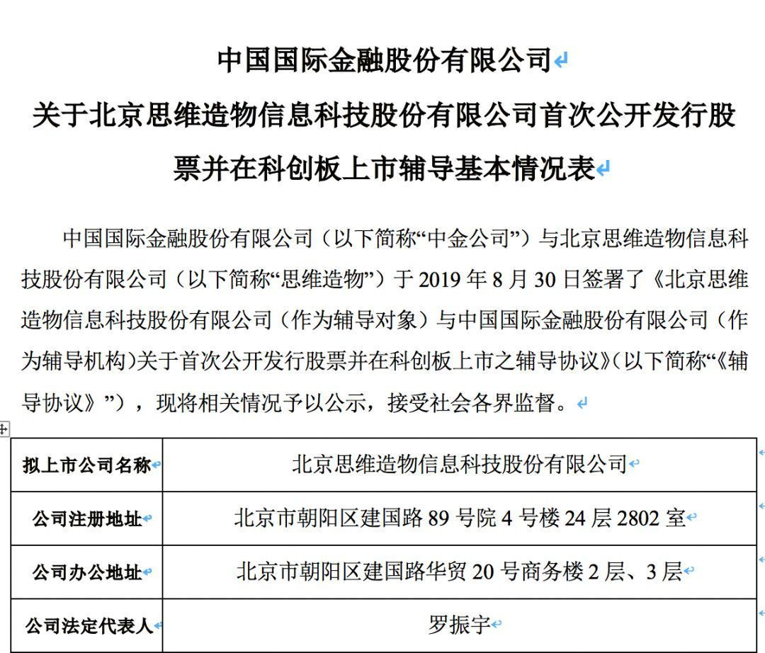 通過這份信息表,可以看到羅輯思維將選擇在科創板進行上市,中國國際金融股份有限公司作為其輔導機構。