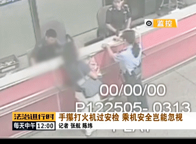 一個女的在過安檢的時候,故意把打火機緊緊攥在手裏,想要矇混過關。