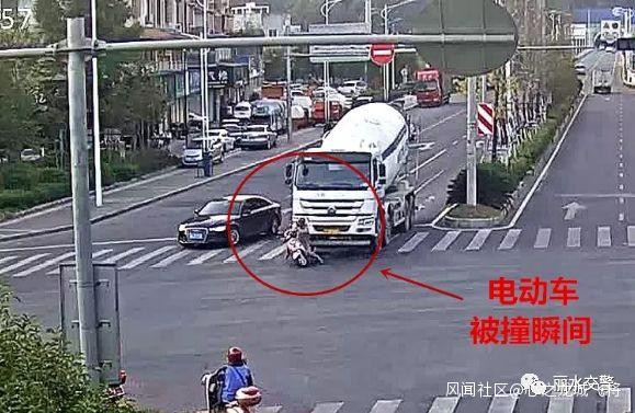 2019年10月15日下午17時許,龍泉市歐冶大道與劍池西路紅綠燈路口發生一起交通事故,一輛混泥土攪拌車在綠燈起步時,撞倒一輛二輪電動車。