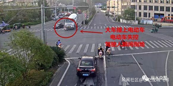 2019年10月15日下午17時許,龍泉市歐冶大道與劍池西路紅綠燈路口發生一起交通事故,一輛混泥土攪拌車在綠燈起步時,撞倒一輛二輪電動車。