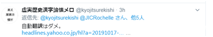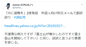 “雖然這個例子有可能不太相稱,但是與‘富士山開始噴發了所以請馬上開始富士登山’一樣,與其説是誤譯,不如説是有惡意。”