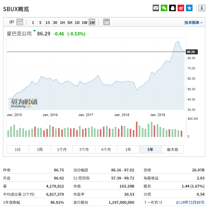 星巴克股價近五年走勢,來源:英為財情Investing.com會員體系大改革,對星巴克而言是好是壞?