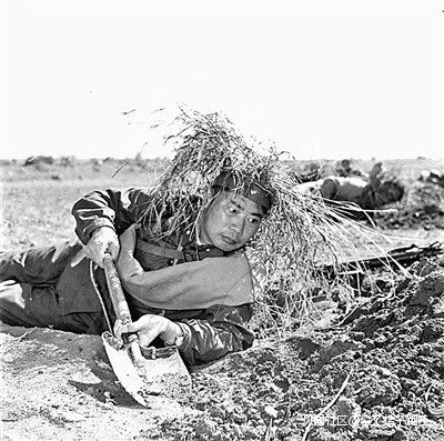 濟南軍區司令員楊得志上將在進行“敵前”迫近作業。