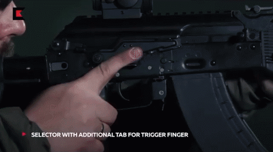 AK-200系列吸收了很多西方的人體工學的設計思想,比如在AK萬年不變鐵片快慢機上增加了一段凸起的貼片,這樣手不用離開握把就可以用食指快速切換步槍的射擊模式。護木下方和側面也增加了附件接口,可以安裝更加舒適的小握把,便於射手握持。