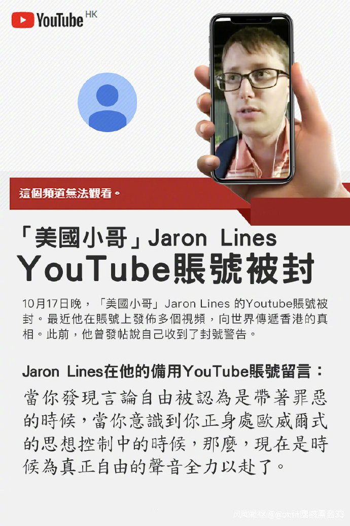 前幾天,一位名叫賈倫·萊恩斯(Jaron Lines)的美國小哥在YouTube平台上發佈多則視頻,呈現香港示威者訴諸極端暴力的醜陋嘴臉,也在告訴世界香港的真相,引發關注。