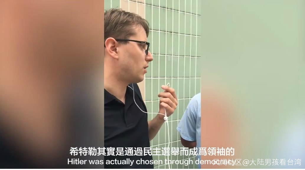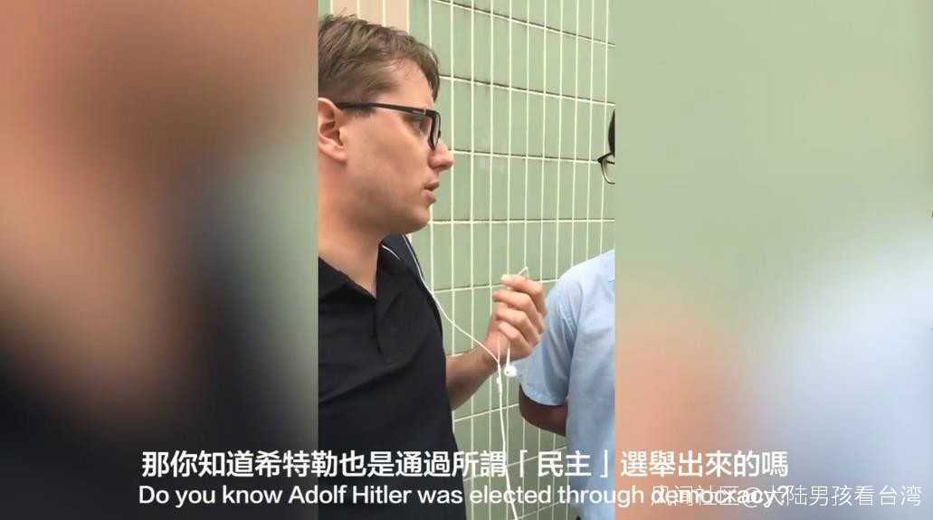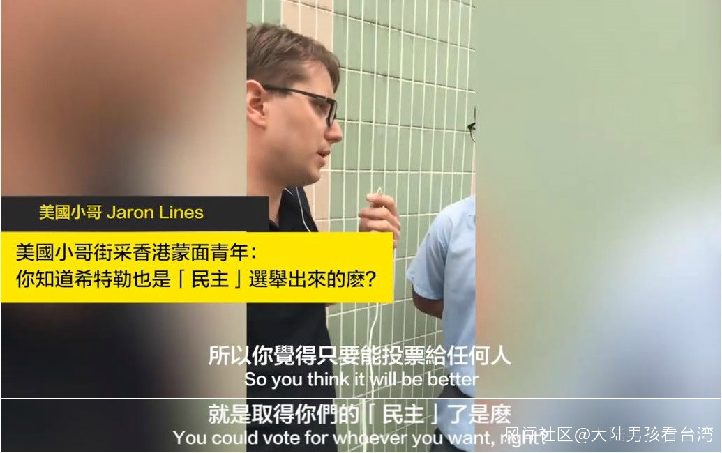 視頻中,蒙面青年向萊恩斯首先解釋了他們的政治訴求是什麼,萊恩斯就此總結了一下對方的觀點。隨後便話鋒一轉,詢問:“那你知道希特勒也是通過所謂‘民主’選舉選出來的嗎?”