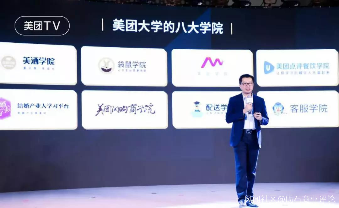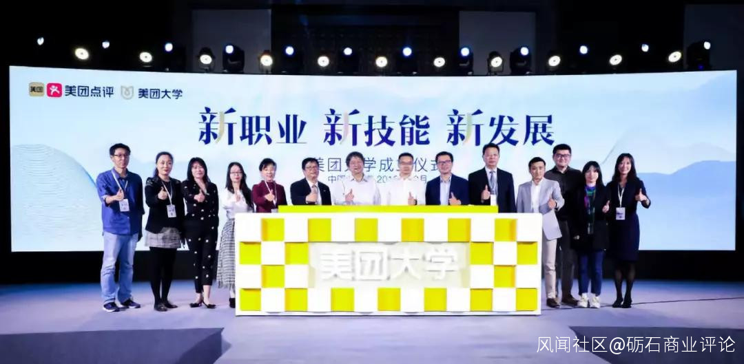 2019年10月15日,美團再進一步,在北京召開以“新職業·新技能·新發展”為主題的發佈會,宣佈正式成立“美團大學”。“美團大學”不同於其他企業大學主要服務內部員工培訓,其面向的是生活服務行業的大量從業人員。