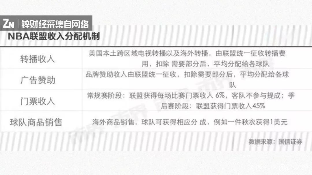 目前,NBA在中國的主要收入來源包括,賽事轉播權、廣告贊助、特許商品售賣、籃球比賽門票收入。NBA副主席兼首席運營官譚惠民在去年接受福布斯新聞採訪時指出,NBA中國市場的價值已經達到40億美元。據相關人士分析,這可以佔到NBA總收入的10%。