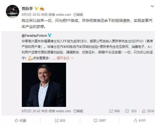 賈躍亭要回國了!沒股份了還控制FF,真強大!_風聞