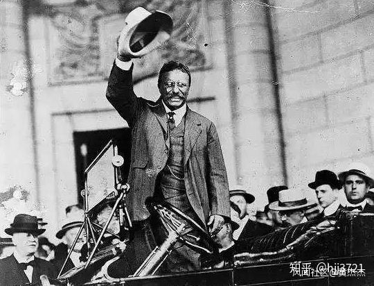美國總統羅斯福手拿草帽,而他身邊好幾個頭戴着草帽