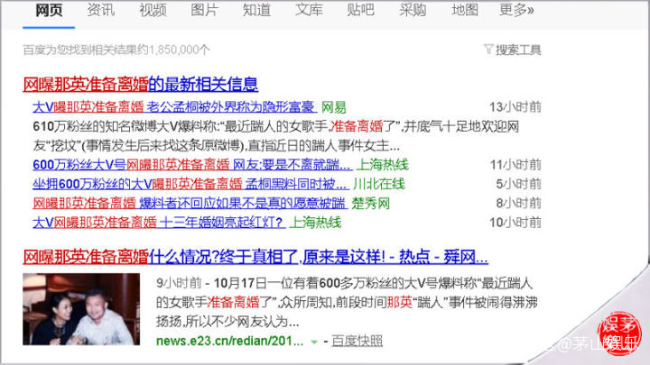 微博截圖豆瓣與微博大V所謂的“爆料”,已經令#網曝那英準備離婚#一詞出現在百度的“搜索熱點”裏,原來,今天(17日)有多家(自)媒體對“網曝那英準備離婚”進行了鋪天蓋地的報道。不過,令人有點意外的是這麼勁爆的新聞,居然一沒有形成話題,二沒有衝上熱搜。雖然微博上疑似被屏蔽了,但其它平台上還是很多報道,這也足以令那英不爽的,於是才有了她的千字長文。