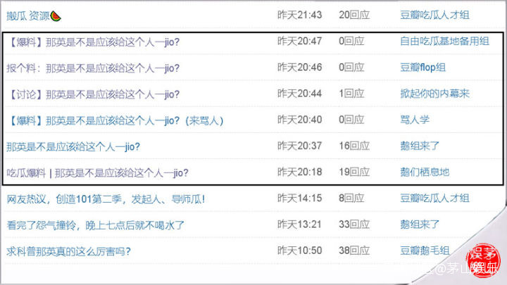 微博截圖到底是什麼樣的文章會令那英如此生氣?原來,16日晚20:18分開始,同一位網友分別在“鵝們棲息地”、“鵝組來了”、“罵人學”、“掀起你的內幕來”、“豆瓣flop組”、“自由吃瓜基地備用組”共6個豆瓣小組的以“吃瓜爆料 | 那英是不是應該給這個人一jio?”、“那英是不是應該給這個人一jio?”以及“【爆料】(【討論】、報個料:)那英是不是應該給這個人一jio?”為標題進行所謂的“爆料”。