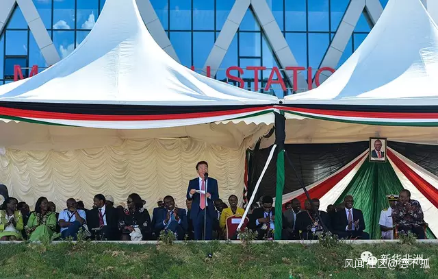 10月16日,中國駐肯尼亞大使吳鵬出席內羅畢-馬拉巴標軌鐵路(內馬鐵路)一期工程通車儀式並講話。新華社記者 李琰攝
