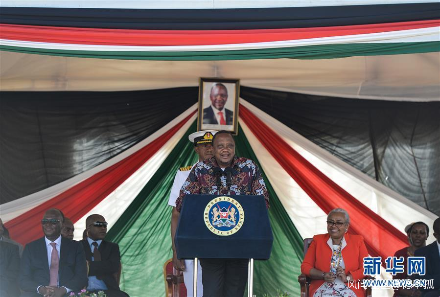 10月16日,肯尼亞總統肯雅塔在麥馬修火車站出席內羅畢-馬拉巴標軌鐵路(內馬鐵路)一期工程通車儀式並講話。新華社記者 李琰 攝