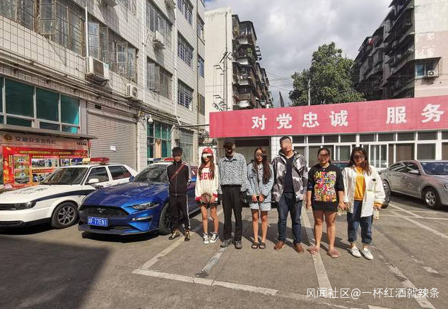 10月16日晚11時許,在成都市成華區御風一路,一輛車牌號為川F 77***的藍色野馬車開着應急車燈停在雙向四車道的機動車道上,六七名青年男女在停放在道路中間的野馬車前拍攝視頻。