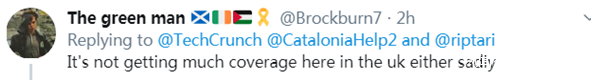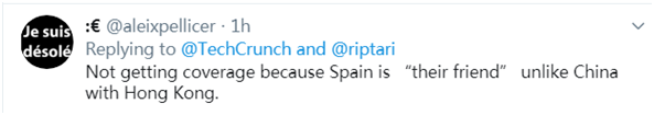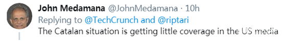 另外,在TechCrunch報道評論區,有多位歐美國家網友表示,自己看到的關於加泰羅尼亞示威活動的報道很少。