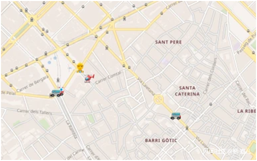 除此之外,美國科技網站“科技關鍵”(TechCrunch)還提到了加泰羅尼亞示威使用的其他“戰術”。報道稱,加泰羅尼亞示威者還開始使用與香港示威活動中出現的被稱為“暴徒好幫手”地圖應用“HKmap.live”類似的APP。據報道,這款APP把Emoji表情疊加在地圖上,以實時展示街道封閉情況和警察位置。