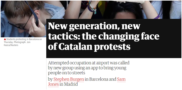 《衞報》還詳細描述了一些加泰羅尼亞年輕示威者接到這條信息時的反應。21歲馬克和安娜馬克表示,接到信息時,二人正在加泰羅尼亞廣場上參加示威活動。“我們的計劃是讓機場癱瘓,以表達我們對正在發生的事情的不滿。”馬克説。隨後,與其他人一樣,經過5個小時的漫長路程後,馬克及安娜抵達了機場。