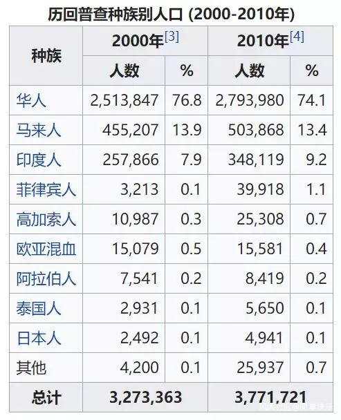 新加坡各族羣人口