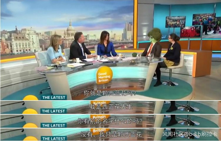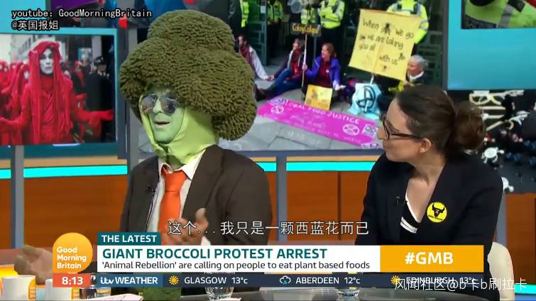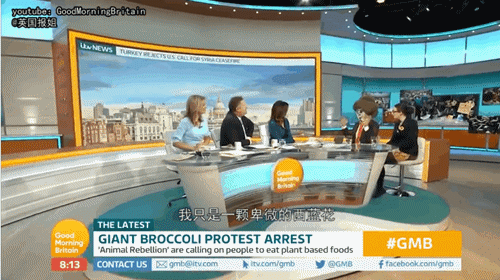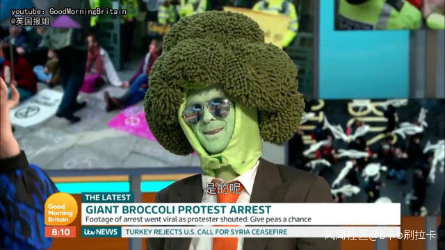 事後,這名示威者又繼續以西蘭花的裝束接受了《早安英國》節目的新聞專訪。