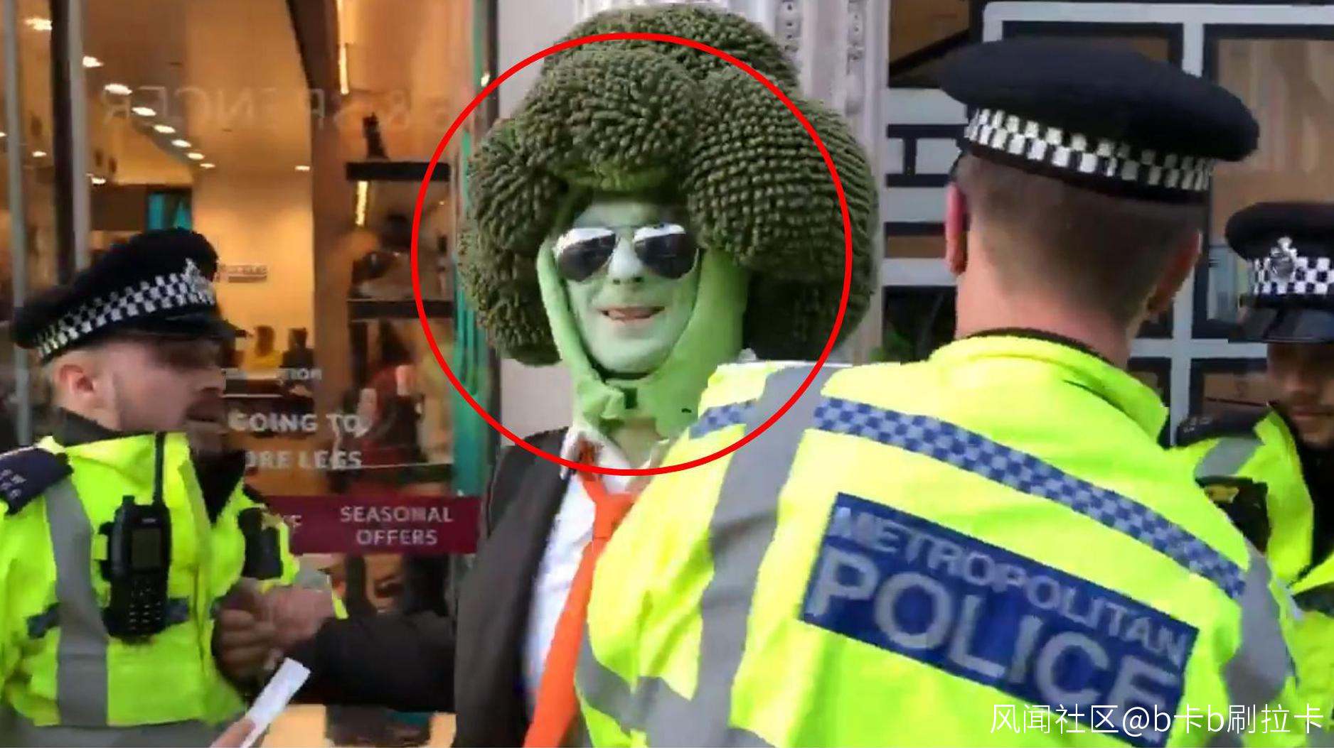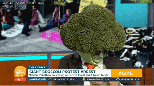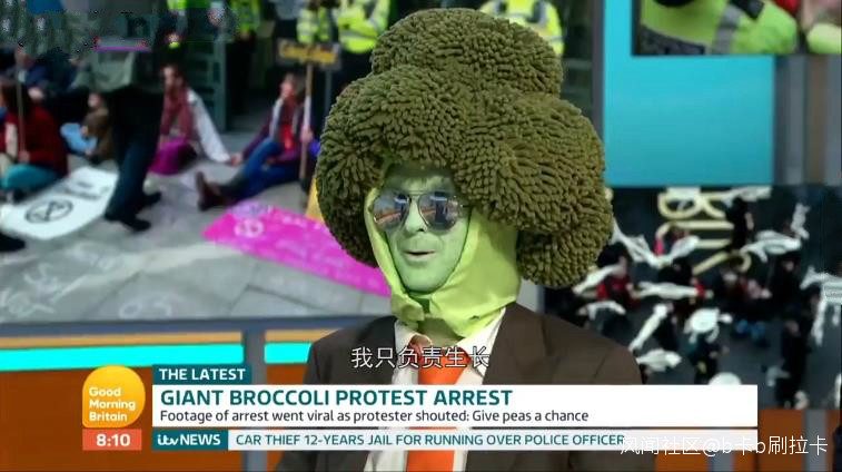 幾天前,英國警察在倫敦街頭逮捕了一名將自己打扮成西蘭花的極端環保主義示威者。