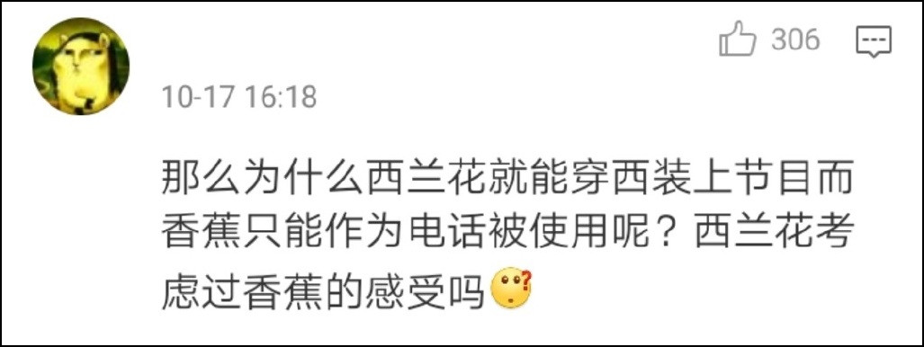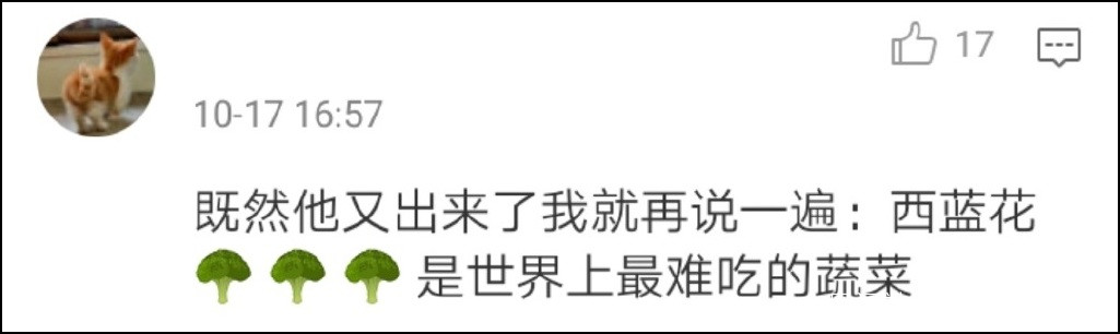 最後面,“西蘭花”先生又做無辜臉,“畢竟我只是一顆西蘭花啊。”