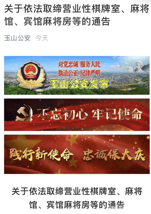 江西玉山警方:全縣取締營業性棋牌室、麻將館_風聞
