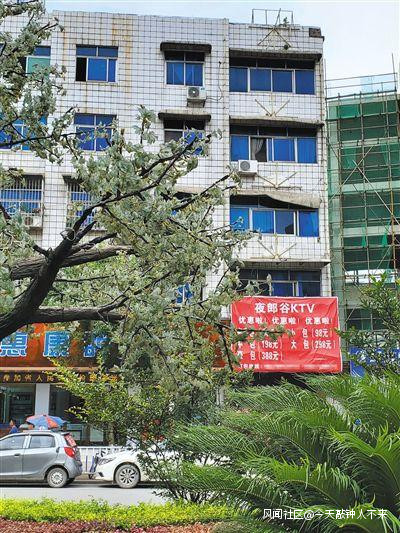 6月21日,隔着一條馬路,遠遠可以看見對面“夜郎谷KTV”的紅色招牌。