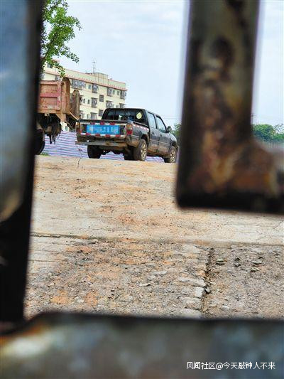 6月21日,透過新晃一中操場大門的縫隙,隱約可以看到門內挖掘現場已被圍起了紅白藍帆布。