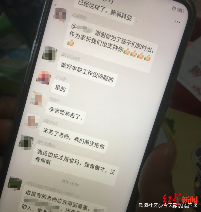 有學生家長告訴紅星新聞記者,李田田的文章也被家長轉發至家長羣,不少家長給予支持態度:“感謝老師,孩子們和家長都支持你”、“敢直言的老師應該得到尊重”。