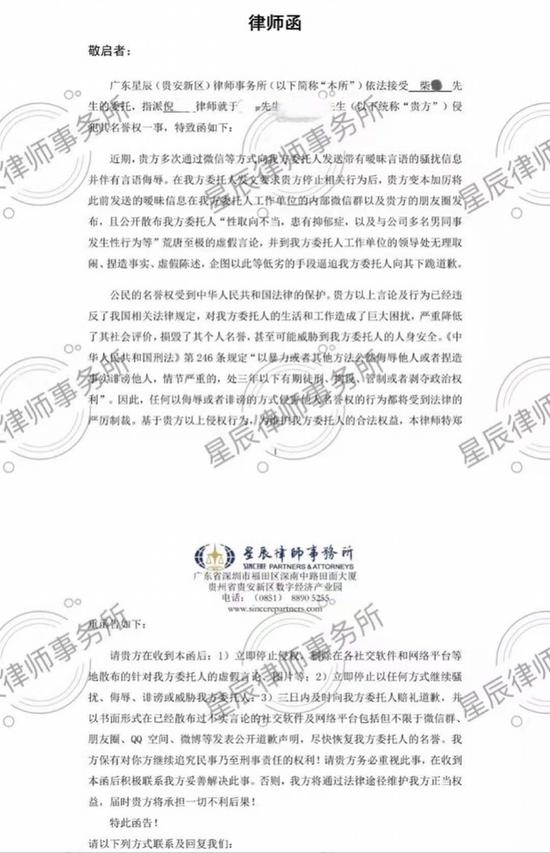 此外,李某還發出了律師函,稱網傳內容及王某一方的言論荒唐至極,公開散佈虛假言論,要求停止相關行為。