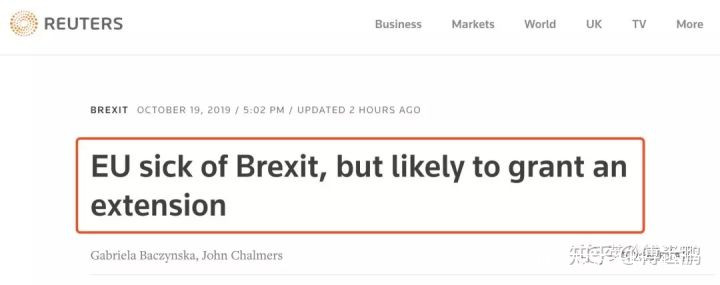 路透剛剛發出的報道也是同樣觀點:歐盟已經對脱歐感到厭煩,但依然會批准延期。