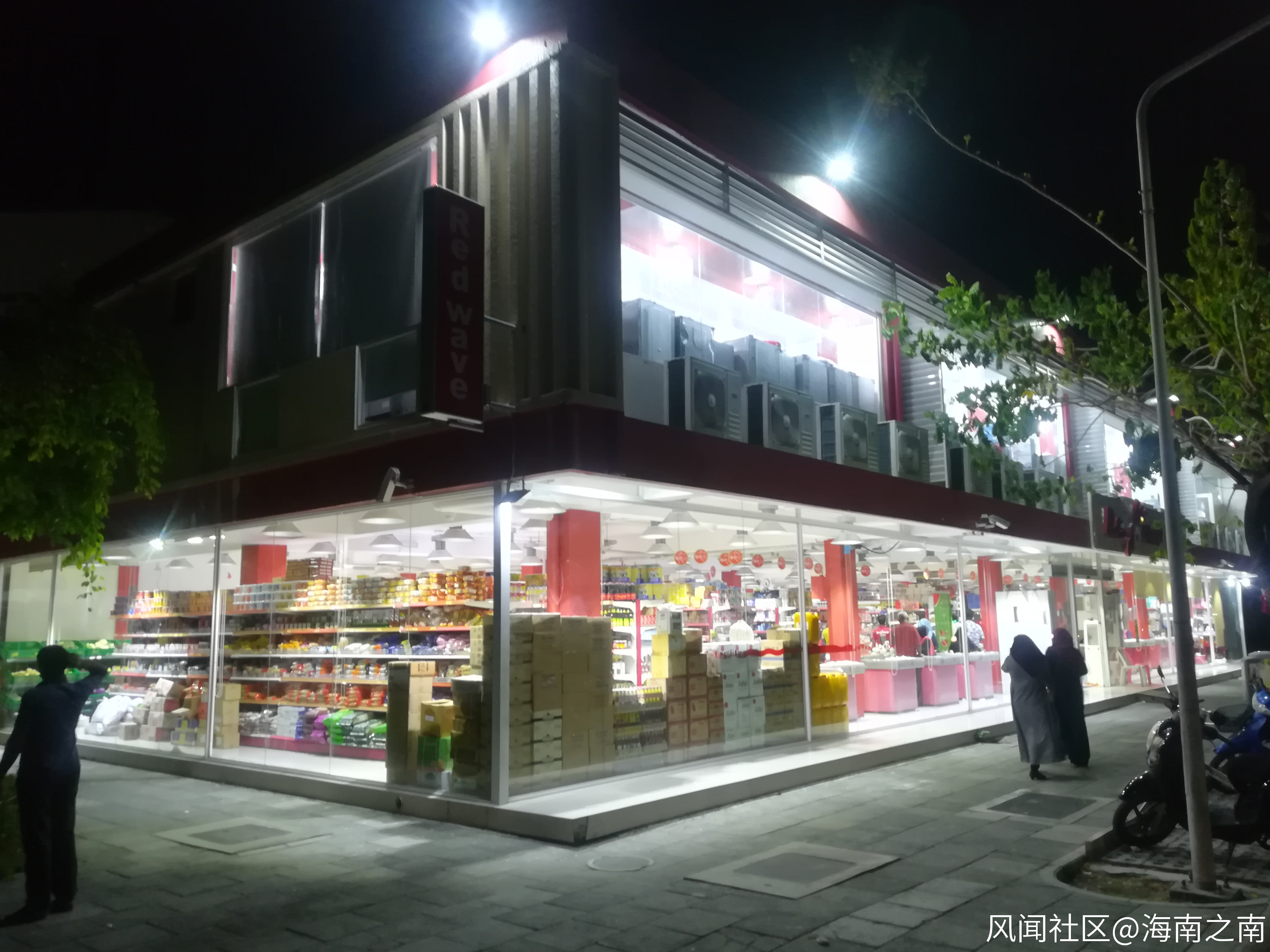 胡魯馬累島上赫赫有名的redwave超市。這裏商品的價格感覺和中國差不多。塞浦路斯fantana的葡萄汁12元一瓶,德運奶粉1公斤裝60人民幣左右。和京東售價差不多。有點出乎我的意料,一般來説,小島嶼物流成本是很高的,市場規模又小,物價比陸地上要高不少。可能是馬爾代夫位於世界海運的交通航線上,物流成本相對較低一些。可能也有政府提供了補貼,或是低關税等原因。