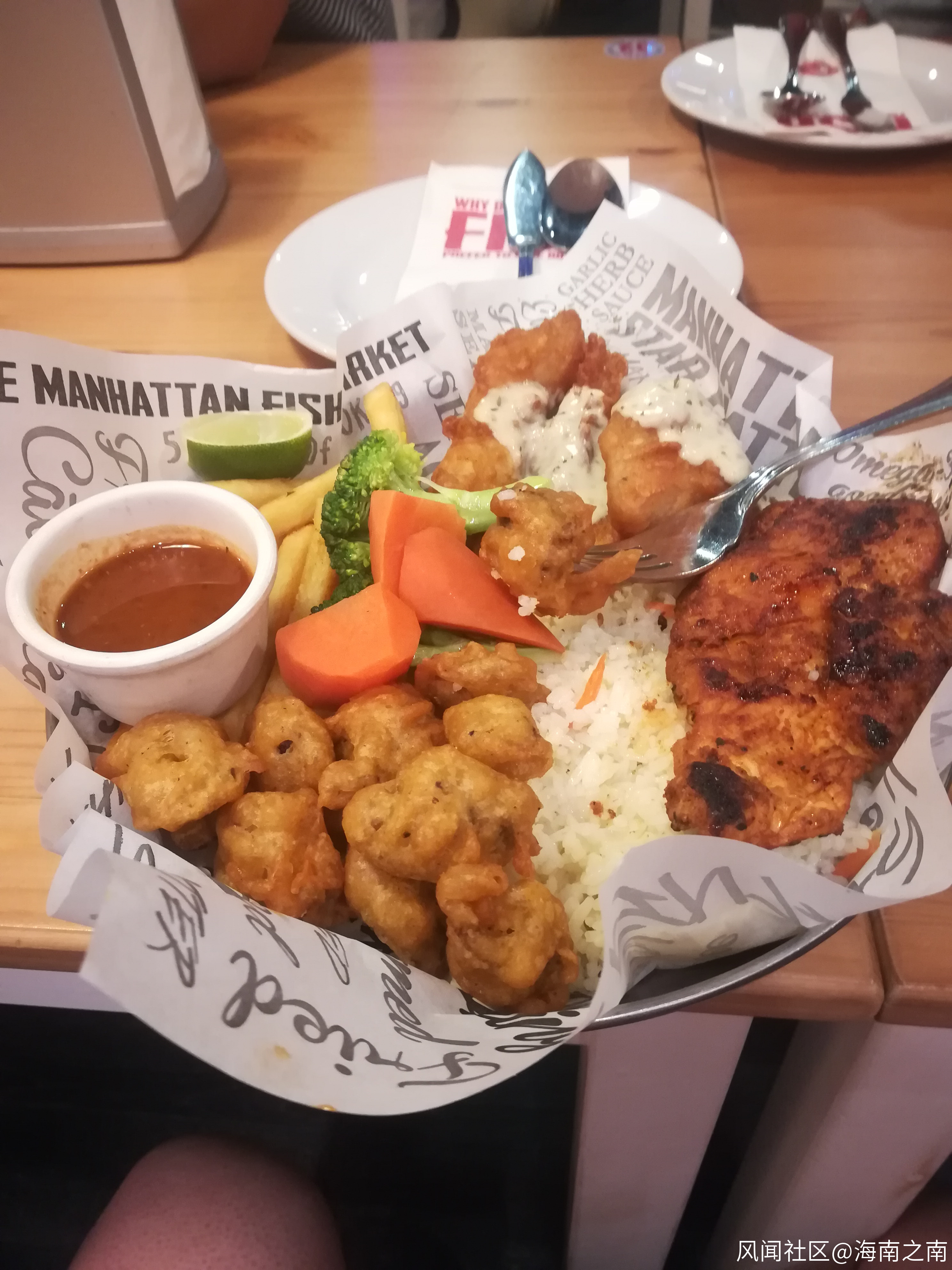 胡魯馬累島上的餐館:曼哈頓魚碼頭(Manhattan fish market),位於胡魯馬累島上最繁華的大街上,一棟商業樓的頂樓:3樓。業主請的客。2020年三月,這條大街上同時發生了兩三起kongbu襲擊事件,有中國人、澳洲人被刀捅傷。Manhattan fish market是一家連鎖企業。這次出差,遇到了軍人出身的王工,江蘇人,有觀察力,也很正直,談得來,也許此生也就只能遇到這一次了。