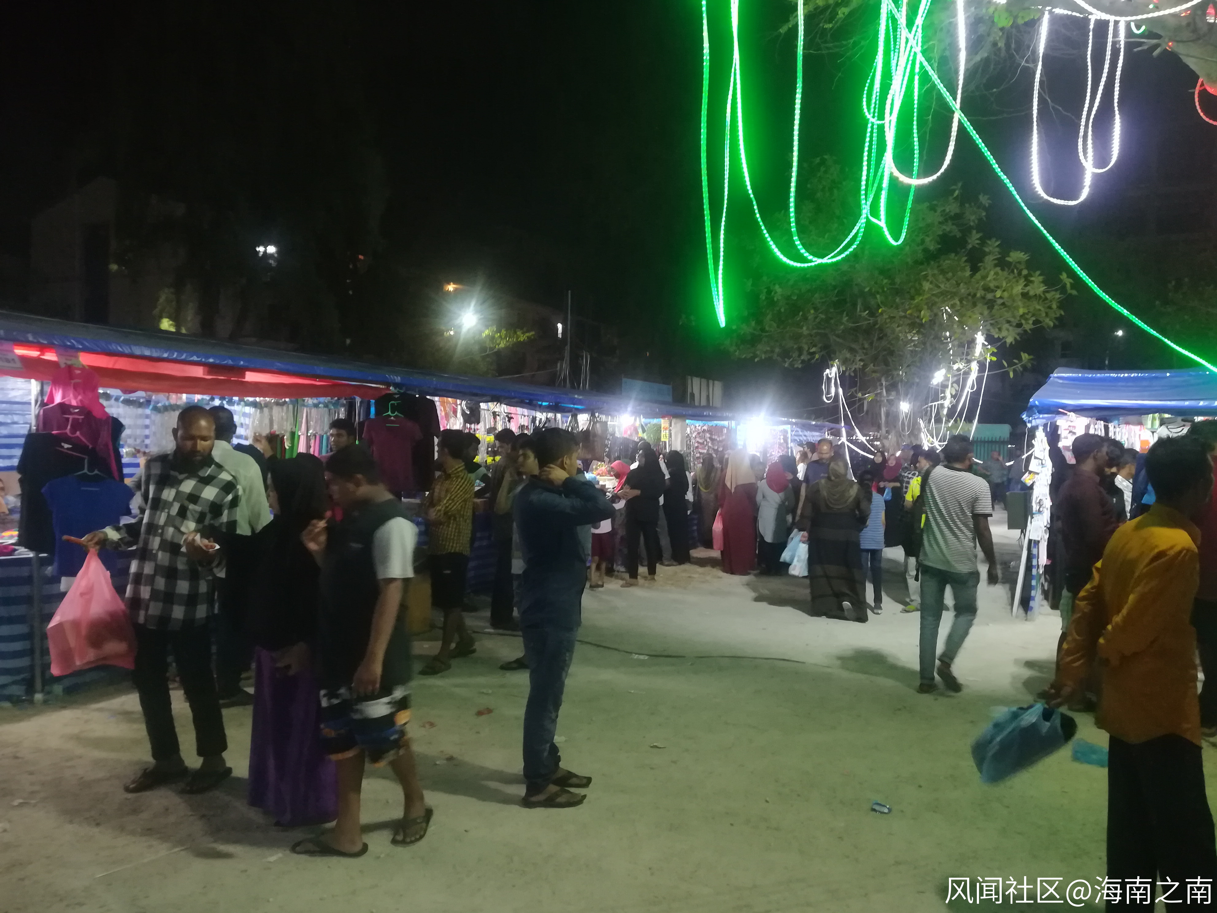 每天晚六點下班,我就喜歡到島上居民區或是乘公交車馬累島去閒逛,看看當地人的生活。葫蘆馬島中心公園等處,經常有大型的夜市,一格格防雨布搭建的商鋪,和中國的鄉村大集市完全一樣。這種集市在中國的城市裏哪怕是小城市都已經很少見了。裏面銷售一些比較低端的生活用品,如衣物、洗髮精之類,常常是人山人海。這説明很多馬爾代夫人的收入還處於比較低的水平。在胡魯馬累島的居民區裏,通過很多一樓家庭的落地窗,你也可以看到很多馬爾代夫的家庭生活水平從裝修上看大概相當於中國一般縣城。馬爾代夫這麼熱的國家,胡魯馬累島的居民樓上安裝得也不是很多。有點出乎意料。在常識中,馬爾代夫這種國際性旅遊國家,大概生活水平應該處於比較高的水準。後來瞭解到,馬爾代夫那些大量的海島居民,其生活更是可以用家徒四壁來形容。可以理解,馬爾代夫那些一個三四百人的海島,能有什麼就業機會呢?供水、供電都是高成本,全國的年輕人都跑到首都馬累島或是旅遊島打工。