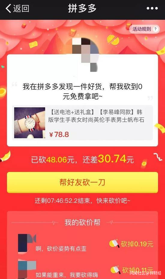 拼多多 幫我砍一刀活動 圖片來源於網絡