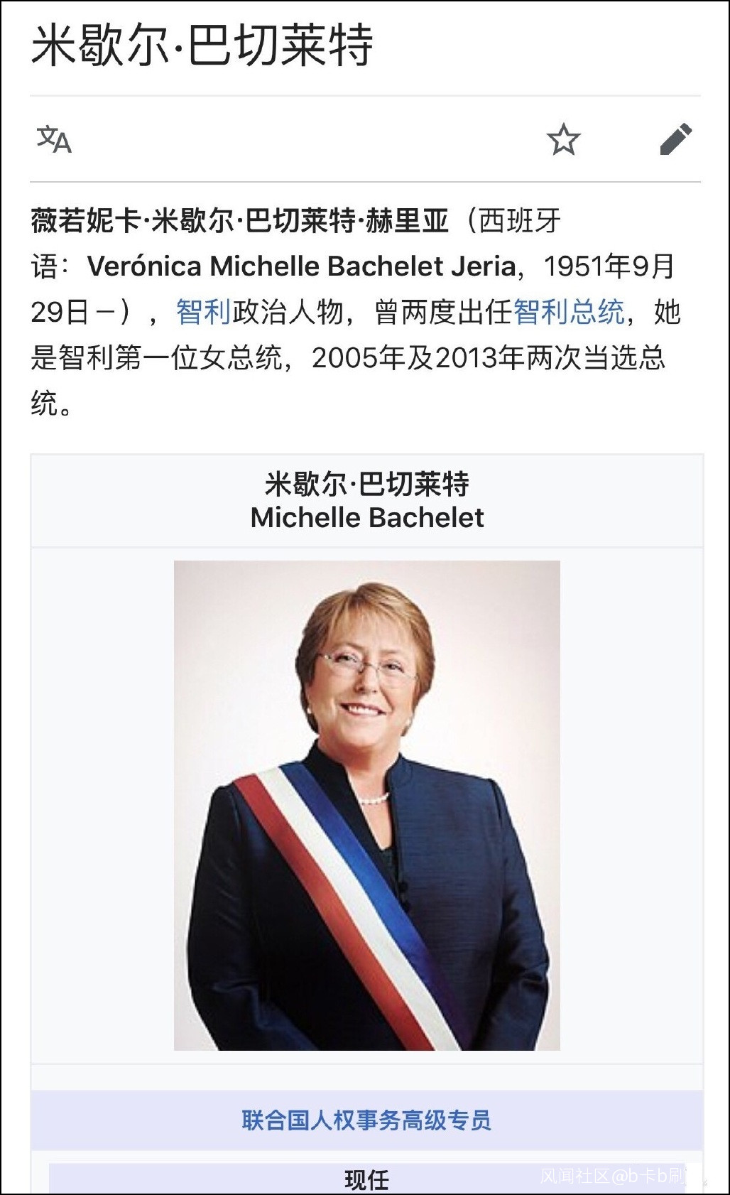有網友發現,聯合國人權事務高級專員米歇爾·巴切萊特(Michelle Bachelet)早前曾多次批評香港特區政府,尤其是香港警察在面對示威者時執法過當,還敦促特首林鄭月娥應立即同意就暴力事件展開獨立調查。這位對香港事務指手畫腳的巴切萊特正是智利人,且兩次出任智利總統。