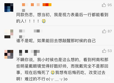 於是,有網友分享了自己當年為了耍酷,明明不近視還要戴眼鏡,最終真成近視眼的辛酸事……