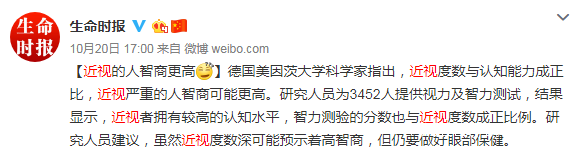 近視的人智商更高?網友:對不起我又拖後腿了_風聞