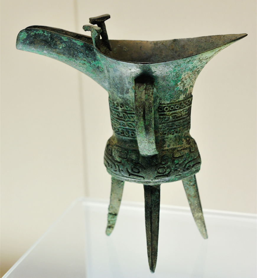 好了,現在我們來看最後一件酒器斝,這種器具於爵一樣,也是在一般宴會的時候使用,器型也與爵類似,只不過在製作上要更加的精美一些。