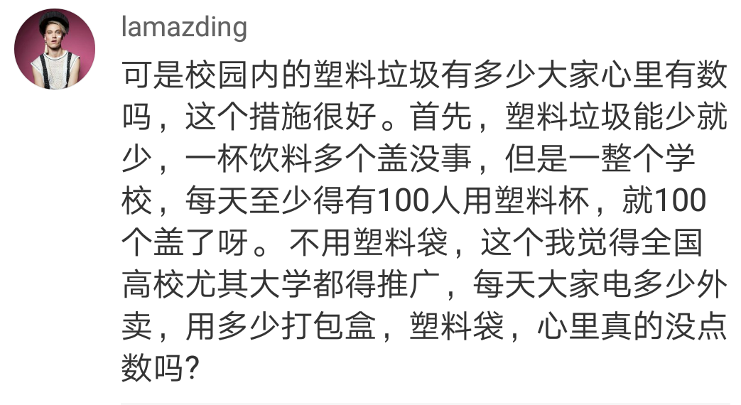 學校出台這種規定,倒不如鼓勵大家自帶容器去買飲品,畢竟杯子用的塑料可比蓋子多多了……