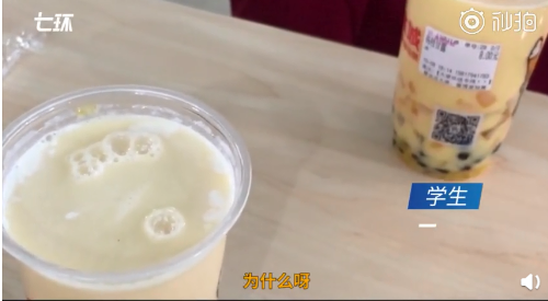 記者去食堂的飲品窗口買了一杯飲料,問“有蓋嗎?”,工作人員説:“學校不讓封口。”