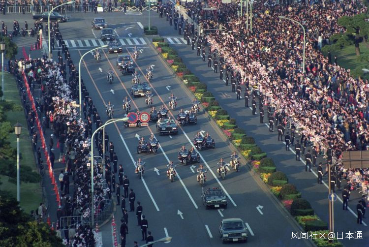 這就是即位儀式中的“祝賀御列之儀”。皇子秋篠宮夫婦和安倍晉三首相乘坐的汽車也會緊隨其後。