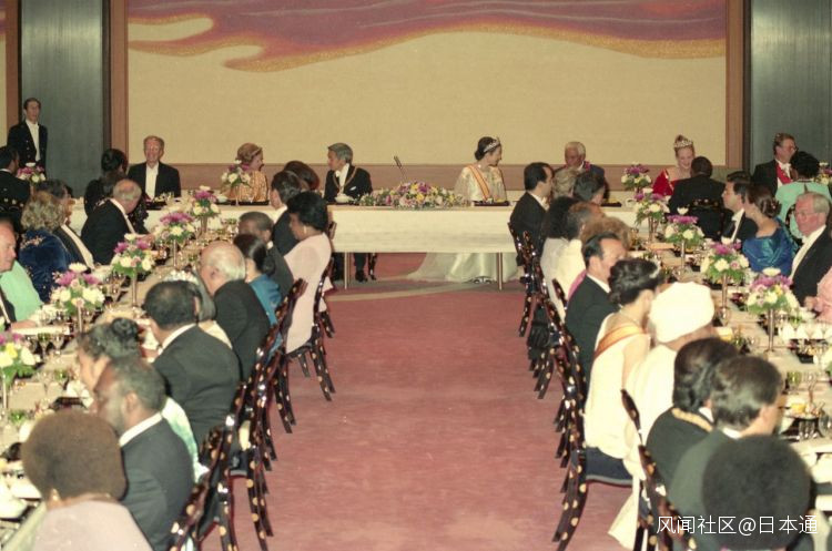 宴會結束之後,天皇夫婦攜國外賓客一起前往“春秋之間”品嚐餐後飲品,同時向各位賓客表達謝意。預計晚間10點50分結束。