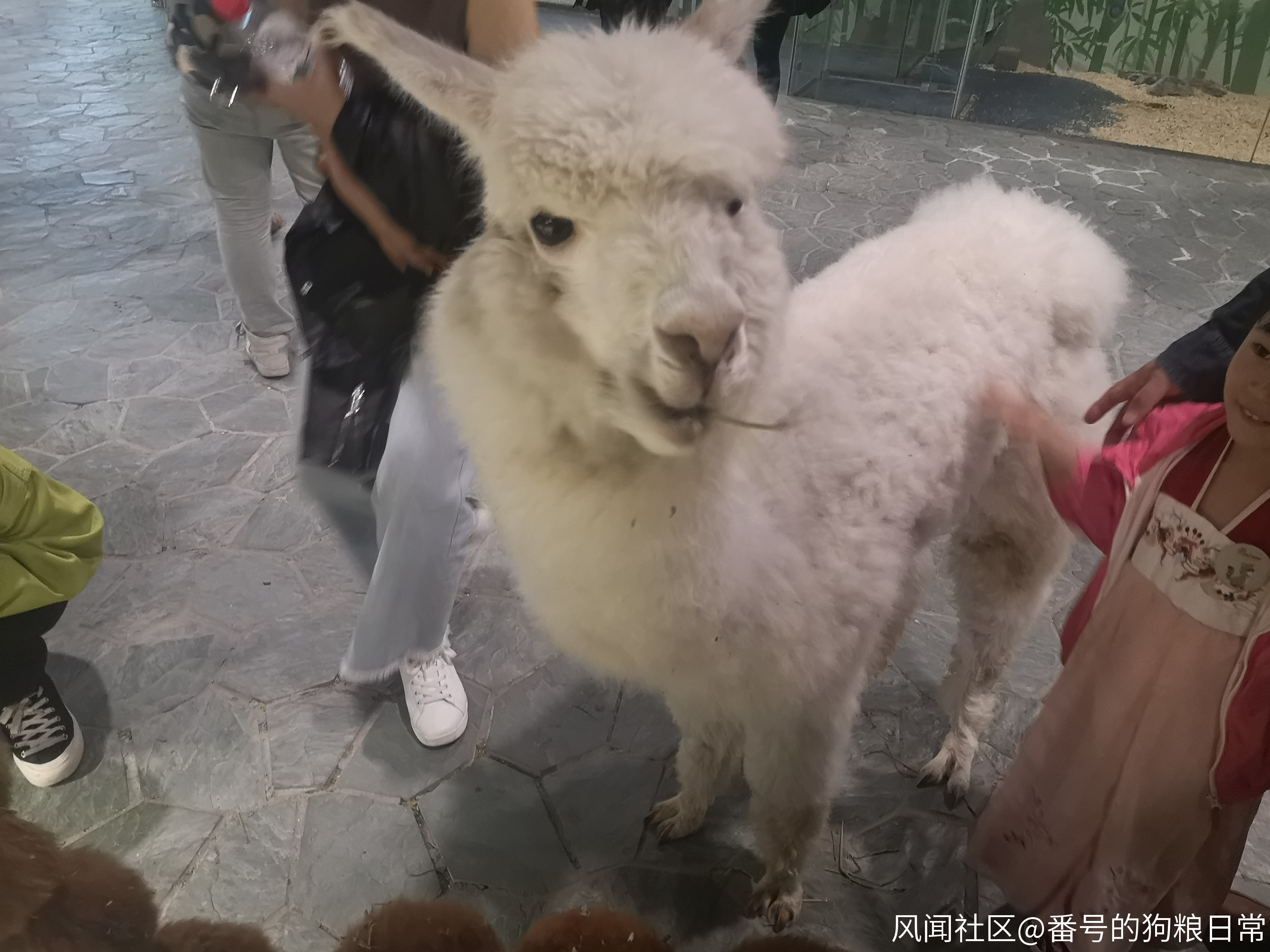 在大廳裏自由溜達,向遊客們討牧草的羊駝