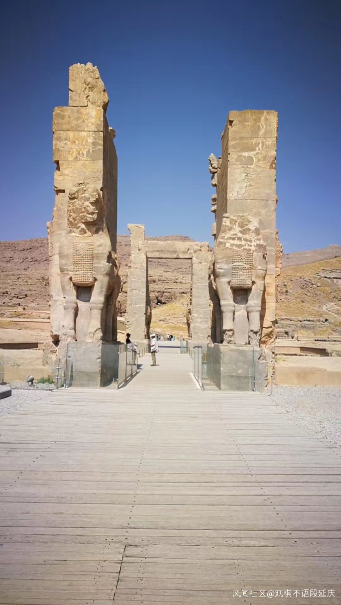 波斯波利斯波斯波利斯 ,波斯帝國大流士一世下令建造的。約建於公元前522年左右,在當時,它不僅成為波斯帝國的標誌性建築,而且還儲存大量的財富。公元前330年,亞歷山大大帝攻佔了這裏,在瘋狂掠奪後整個宮殿付之一炬,那些用黎巴嫩雪松製作的精美圓柱、柱頭和橫樑都隨着大火灰飛煙滅,留下的,只有 石柱 、石基、柱頭。波斯波利斯見證了古阿契美尼德帝國從興盛走向滅亡,龐大的階梯、精美的浮雕、威風的大門時刻提醒着人們該帝國的強大。