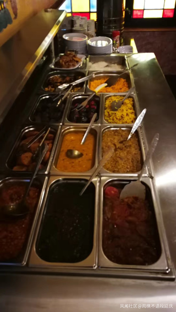 30元自助餐司機帶我去了一個自助餐廳,玻璃門上有兩個波斯戰士在站崗。