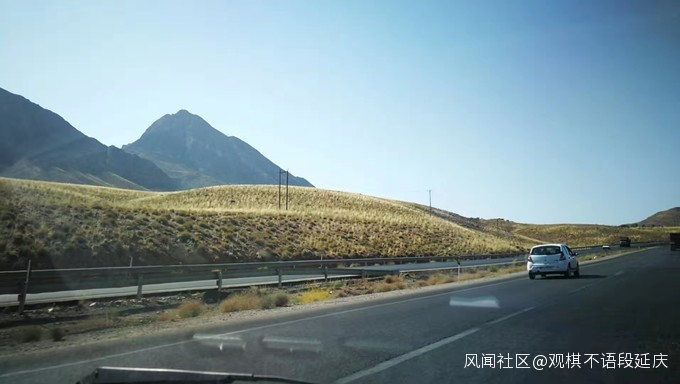 剛出市區,他放慢車速,讓我看左手的一座小山,像老鷹的形態,別説,還真有點形似。